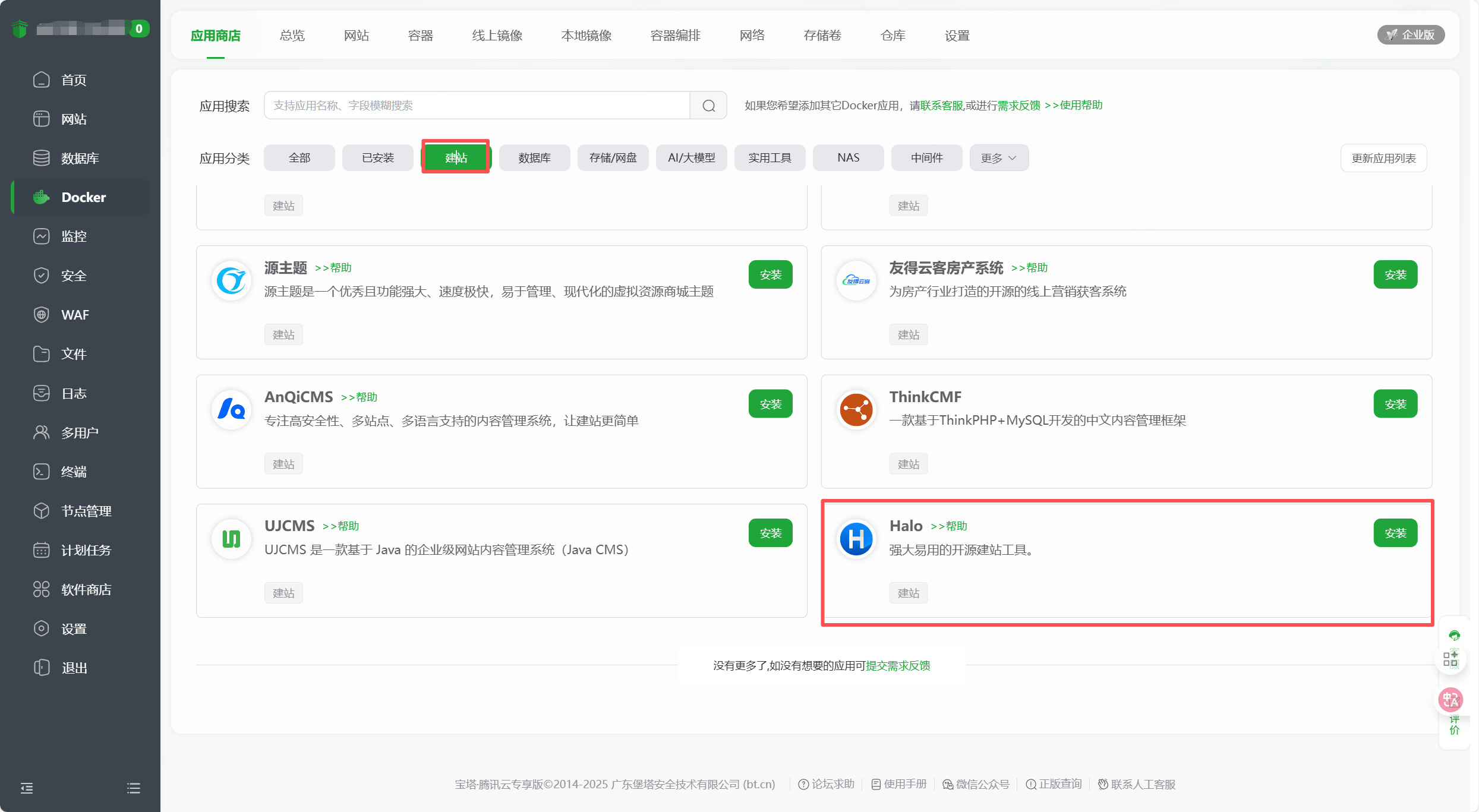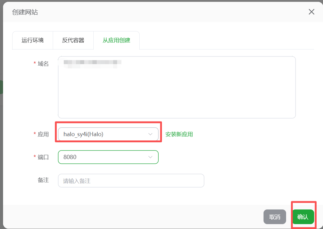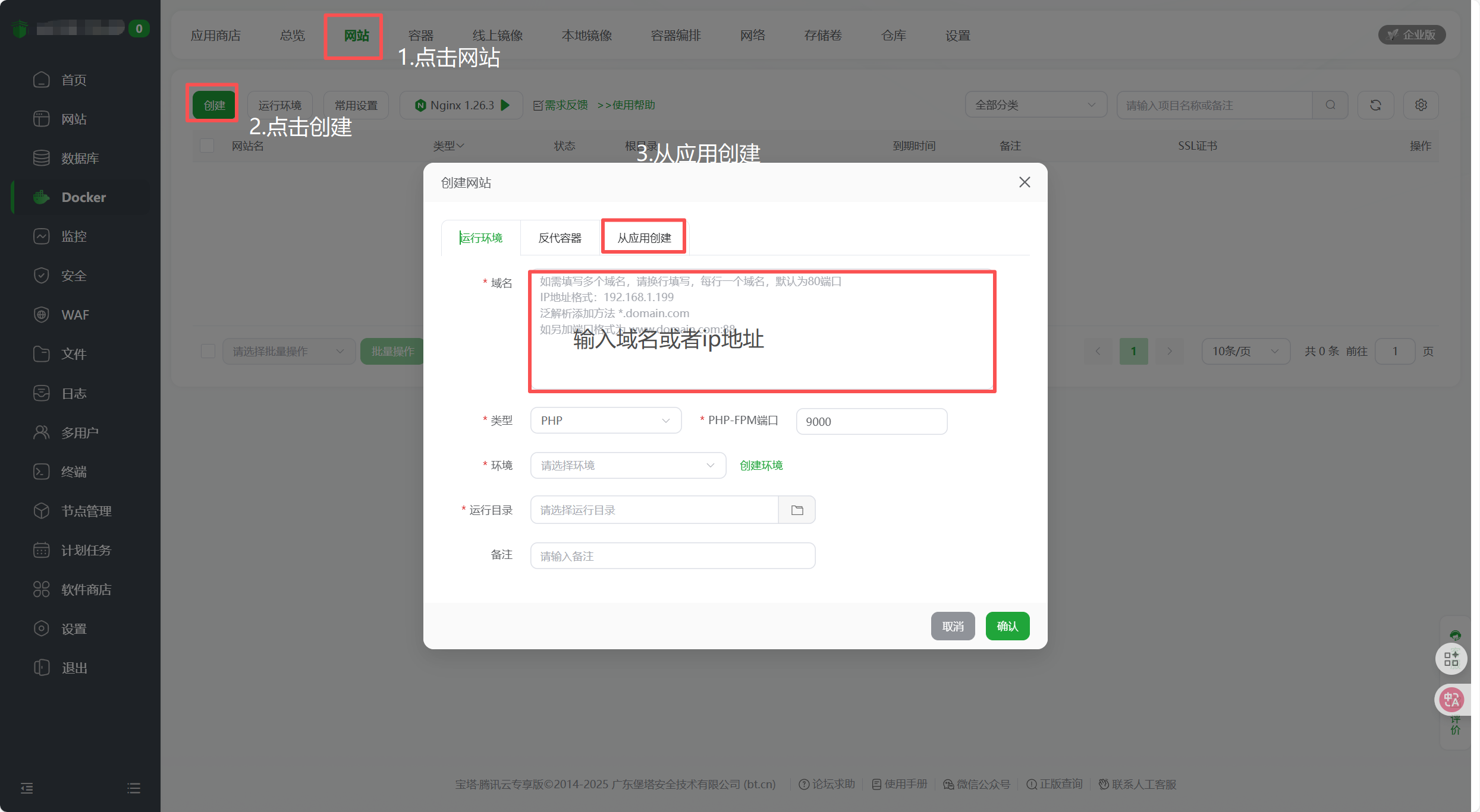 如果网站里面为空,点击网站——创建——从应用创建,输入自己的域名或者ip地址