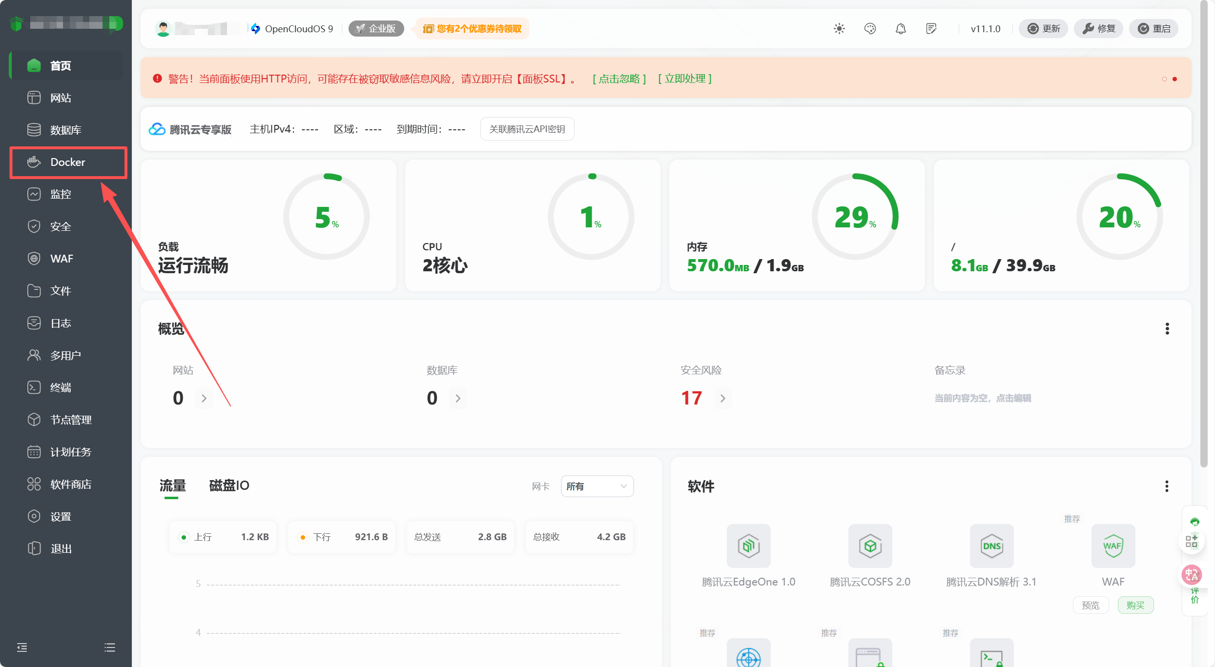 点击访问即可进入宝塔面板,输入所给的账号和密码即可进入主页