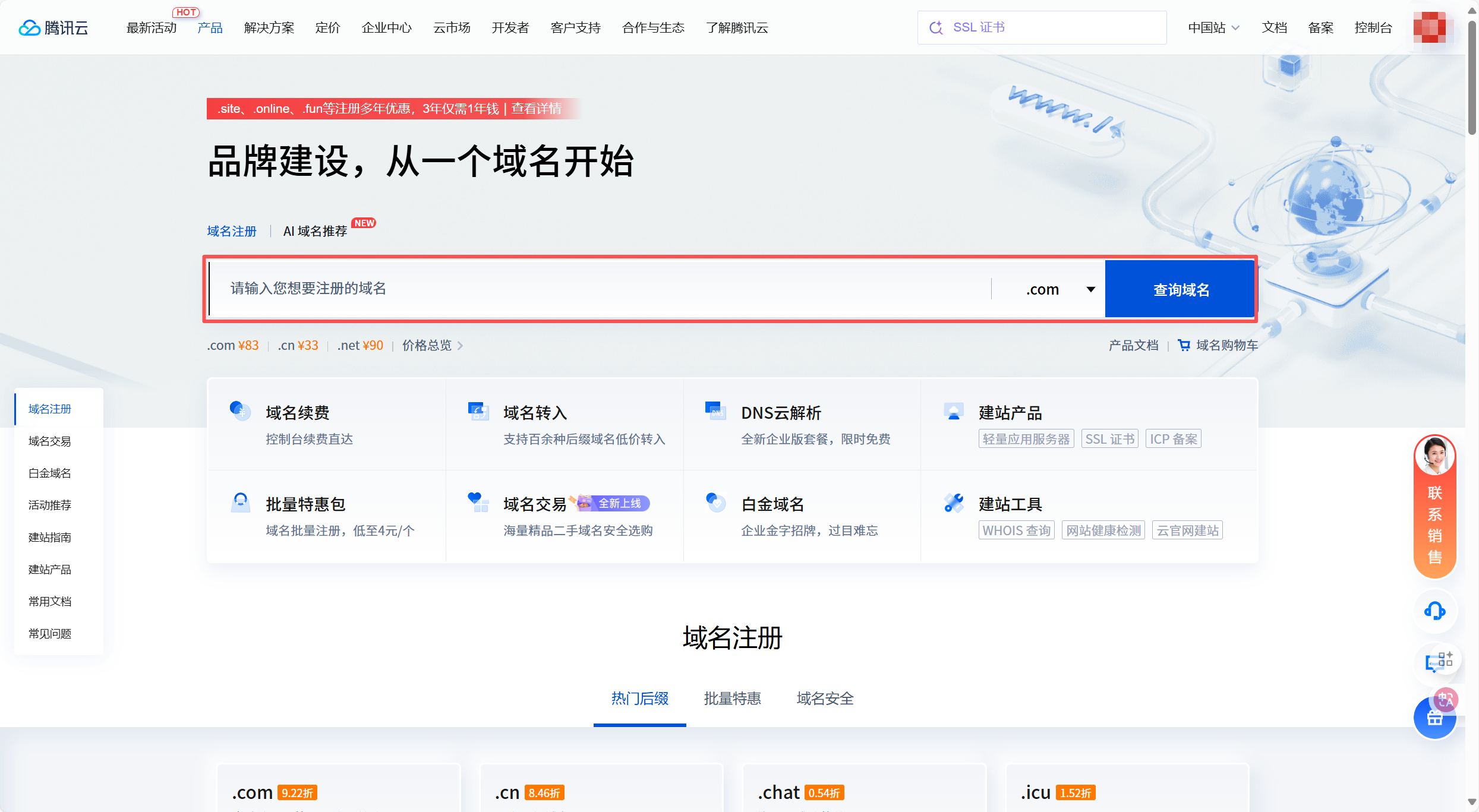 如果没有域名可以写ip地址,或者在域名_域名注册_域名购买_域名注册价格-腾讯云进行注册